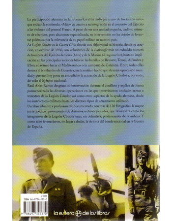La participación alemana en la Guerra Civil ha dado pie a uno de los tantos mitos que rodean la contienda. «Mito» en cuanto a su integración en el conjunto del Ejército a las órdenes del general Franco. A pesar de ser una unidad pequeña, dado su número de efectivos, pero altamente especializada, su intervención no ha dejado de levantar polémica por la relevancia de su papel militar en nuestro país. La Legión Cóndor en la Guerra Civil aborda con objetividad su historia, desde su creación, en octubre de 1936, con voluntarios de la Luftwaffe más un reducido número de hombres del Ejército de tierra (Heer) y de la Marina (Kriegsmarine), hasta su implicación en las principales acciones bélicas: las batallas de Brunete, Teruel, Alfambra y Ebro;
