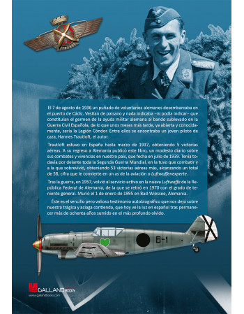 Trautloft estuvo en España hasta marzo de 1937, obteniendo 5 victorias aéreas. A su regreso a Alemania publicó este libro, un modesto diario sobre sus combates y vivencias en nuestro país, que fecha en julio de 1939. Tenía todavía por delante toda la Segunda Guerra Mundial, en la tuvo que combatir y a la que sobrevivió, obteniendo 53 victorias aéreas más, alcanzando un total de 58, cifra que le convierte en un as de la aviación o Luftwaffenexperte.