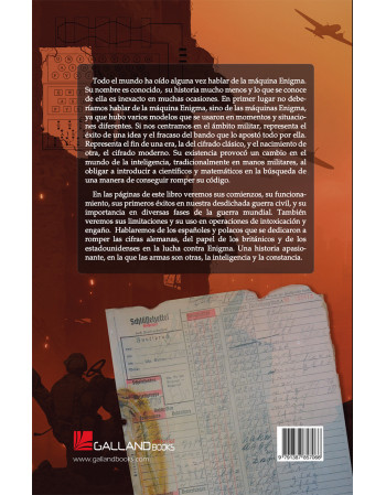 En las páginas de este libro veremos sus comienzos, su funcionamiento, sus primeros éxitos en nuestra desdichada guerra civil, y su importancia en diversas fases de la guerra mundial. También veremos sus limitaciones y su uso en operaciones de intoxicación y engaño. Hablaremos de los españoles y polacos que se dedicaron a romper las cifras alemanas, del papel de los británicos y de los estadounidenses en la lucha contra Enigma. Una historia apasionante, en la que las armas son otras, la inteligencia y la constancia.
