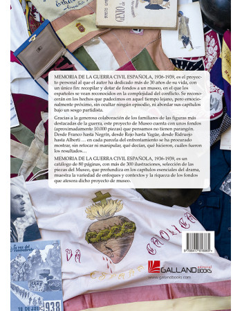 MEMORIA DE LA GUERRA CIVIL ESPAÑOLA, 1936-1939, es el proyecto personal al que el autor ha dedicado más de 30 años de su vida, con un único fin: recopilar y dotar de fondos a un museo, en el que los españoles se vean reconocidos en la complejidad del conflicto. Se reconocerán en los hechos que padecimos en aquel tiempo lejano, pero emocionalmente próximo, sin ocultar ningún episodio, ni abordar sus capítulos bajo un sesgo partidista.